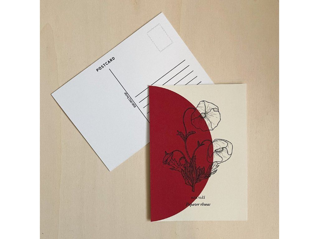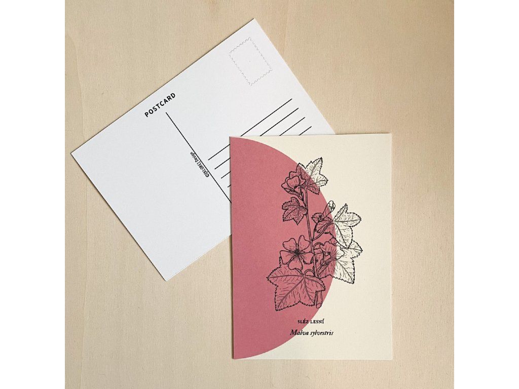 Pohlednice s tiskem autorské ilustrace rostlin.