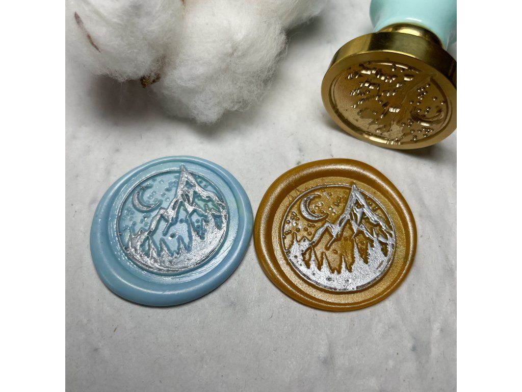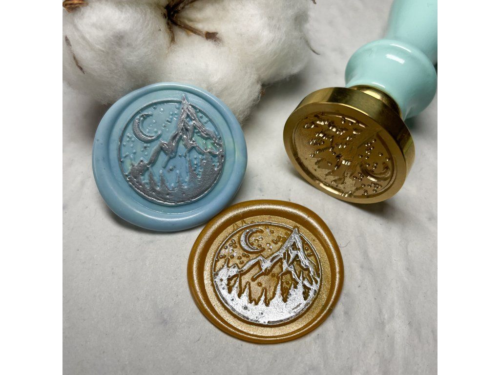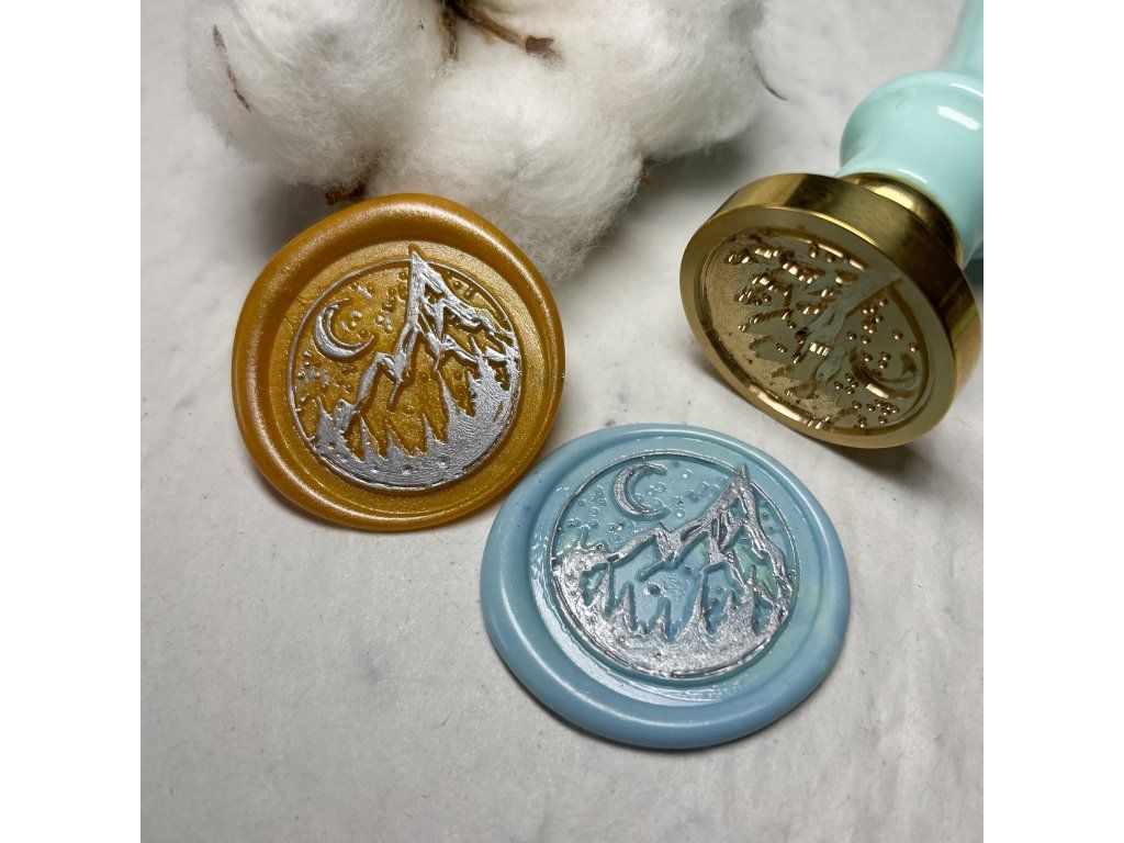 Sada 2 ks ručně odlévaných pečetí o velikosti cca 3 cm (pečetidlo s motivem nočních hor má v průměru 2,5 cm).